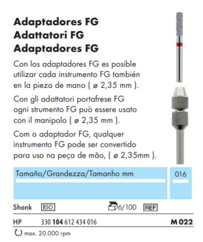 Con los adaptadores FG es posible utilizar cada instrumento FG también en la pieza de mano HP (ø 2,35 mm).