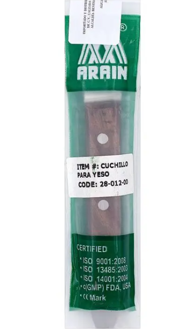 Es una herramienta pequeña y especializada diseñada para cortar y dar forma al yeso dental de manera precisa.
