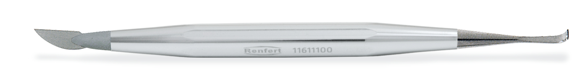 - Instrumento No. 1: Hoja grande para separar y reducir (intercambiable). Punta rascadora grande en forma de garra para modelar de manera precisa la forma exterior del diente.