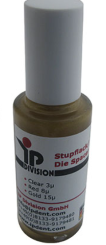 El IP Die Spacer es un barniz espaciador utilizado en el cementado de restauraciones dentales. Ofrece varias variedades en micraje y color, incluyendo oro (15 µ), para ajustarse a las especificaciones del laboratorio. Su aplicación homogénea asegura un control exacto del grosor, favoreciendo un ajuste preciso de la prótesis y prolongando la durabilidad de la restauración. Además,es resistente a la abrasión y se seca rápidamente, lo que lo hace ideal para su uso en procedimientos dentales.