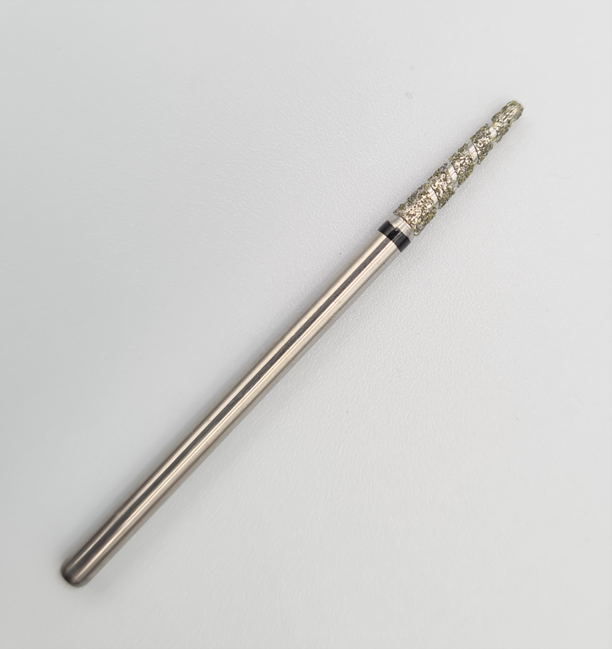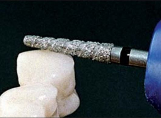 Con el instrumenteo de diamante turbo se reproducen las periquimatias (surcos de crecimiento) en pocos segundos. El instrumento se pasa sobre la superficie labiel ralizando movimientos ondulares.