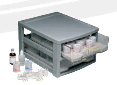 Cerámica de vidrio de nano-fluorapatita de baja fusión para blindaje de estructuras de zirconia y disilicato de litio (IPS e.max® Press), contiene los tonos más comunes de dentina en colores (8 A-D), los materiales correspondientes incisal y los accesorios.