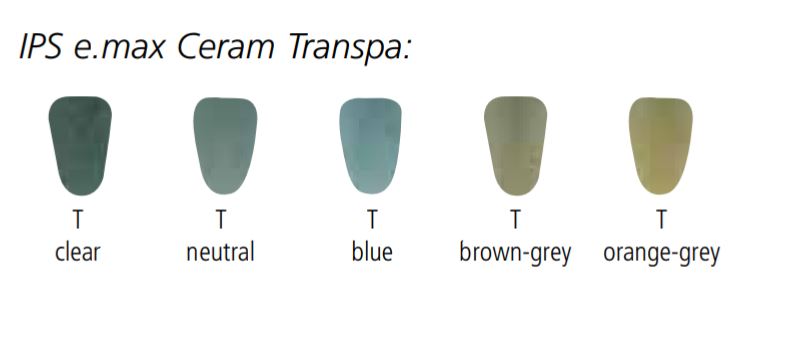 IPS e.max Ceram está disponible en colores Chromascop y colores AD, así como en 4 colores Bleach BL. La gama cuenta con materiales adicionales, como de IPS e.max Ceram gingiva para la fabricación de reproducciones estéticas de encía para las restauraciones de cerámica sin metal, sobre todo en las superestructuras sobre implantes.