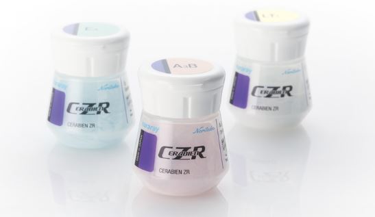 CZR Cerabine ZR es una porcelana especialmente desarrollada para preparación de coronas totalmente cerámicas con estructuras de zirconia. Las coronas y los puentes fabricados con CZR pueden utilizrse con zirconia tanto en la región posterior como anterior gracias a su extremadamente elevada resistencia a la flexión y exelente resistencia a la rotura. Al combinar CZR con zirconia se consigue una estética y un ajuste mejorados con una fuerza máxima para una restauración global superior