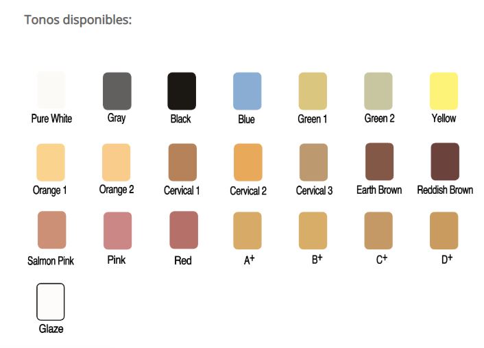 Los tonos de ajuste croma A +, B +, C + y D + están disponibles para mejorar el croma de la porcelana aplicada.