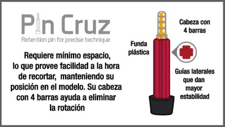 Funda Plástica, guías laterales que ofrecedn mayor estabilidad. Requiere un espacio mínimo, lo que provee facilidad a la hora de recortar manteniendo su posición en el modelo. Posee cabeza con 3 barras lo que provee fácil eliminación de la rotación.