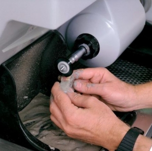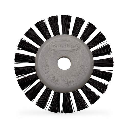 El cepillo de pulido Slim es especialmente apropiado para el pulido de espacios interdentales en prótesis acrílicas.