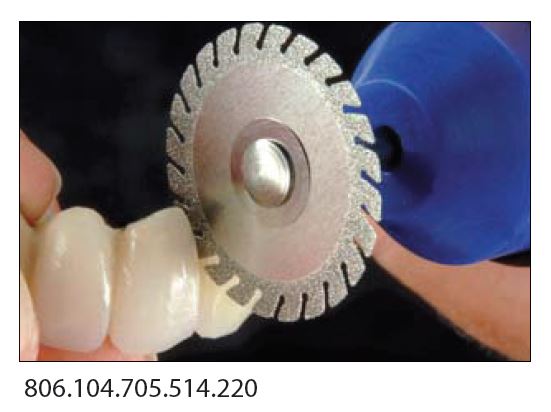 Con este disco diamantado se obtiene alto nivel de estabilidad y se alcanzan con facilidad las zonas interdentales en caso de puentes de varias secciones.