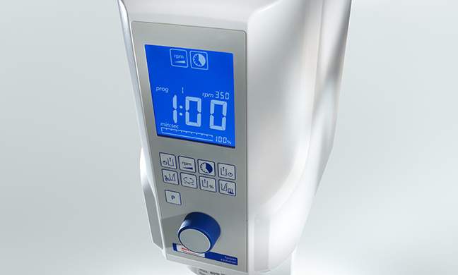 Agitado principal Los motores de alto par de giro de la Twister evolution mantienen sin esfuerzo las velocidades de agitado introducidas con cualquier material, cualquier cantidad de llenado y tamaño de vaso.